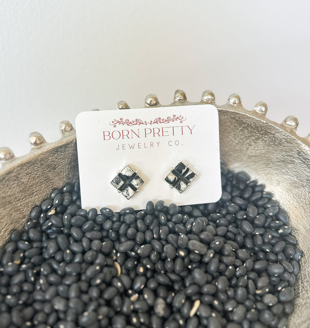 Four Stone Square White Buffalo Studs